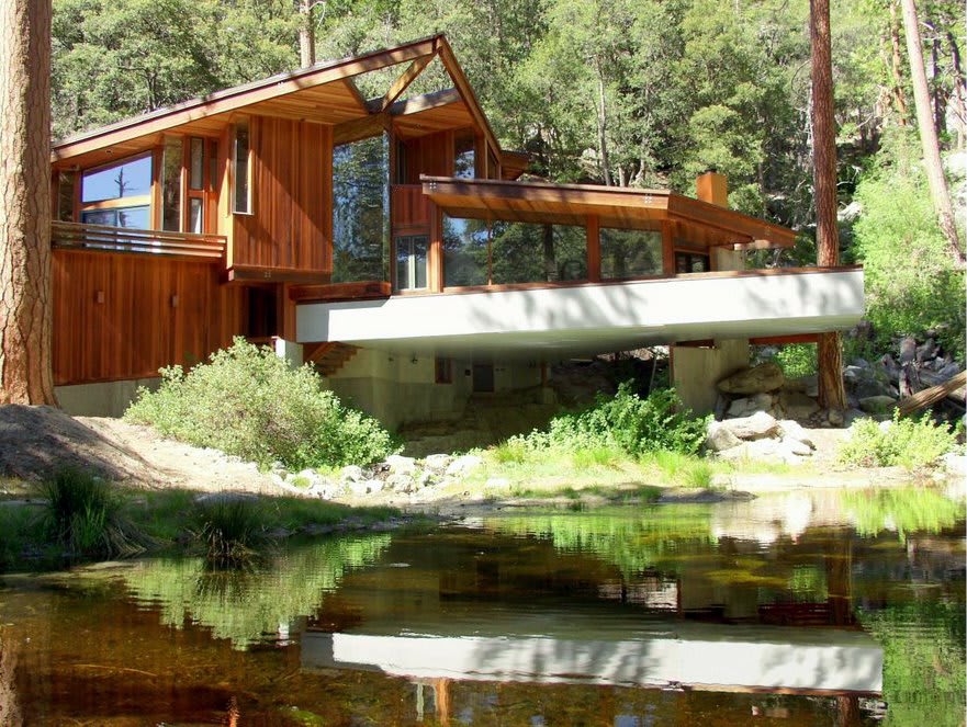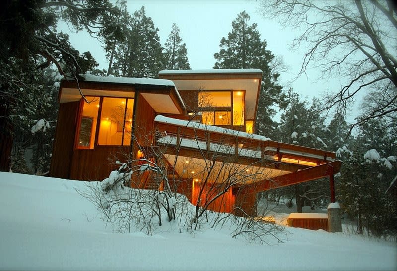 Another favorite is the Shein/Petrol Residence. The home is accessed between two granite boulders, is laid out around a large native oak, and it is currently listed at $2.2 million. The client gave the architect a choice of "favorite" from among 3 wonderful parcels. Of course, he chose the 22 acres at the base of Suicide Rock, with views up its face and up the face of Tahquitz Rock. And once inside the house, there are views out and up to the mountains rising everywhere!